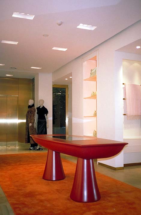 | Verkaufstisch, rot lackiert © Peter Preller. Hamburg |