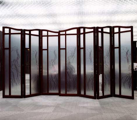 Paravent Mahagoni Verglasung mit Schleiftechnik
